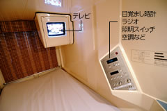 在太空舱卧舖内电视和外,也备有闹钟让不放心早上的您安心。
